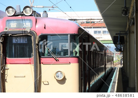 嵐山トンネルを抜け出た竣工当時の塗色を復元塗装した車両による普通列車