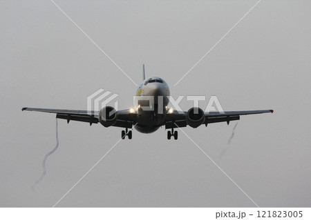 ヴェイパーを発生させながらアプローチしているボーイング737-500
