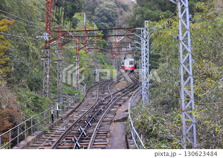 近鉄 西信貴鋼索線 ケーブルカー 8 しょううん が引き揚げられている鋼索線