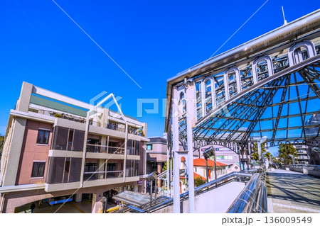 日本の横浜都市景観 横浜市営地下鉄 中川駅(東京都市大横浜キャンパス前)などを望む