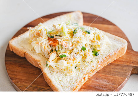 食パンに具材を乗せる
