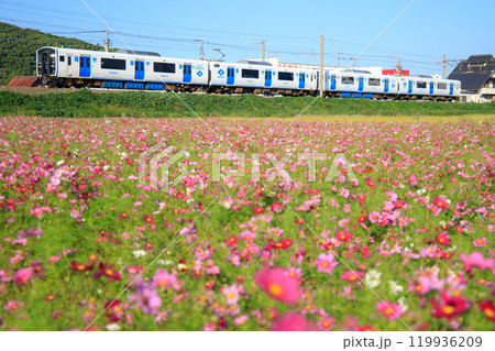 コスモス畑とBEC819系電車(JR九州)