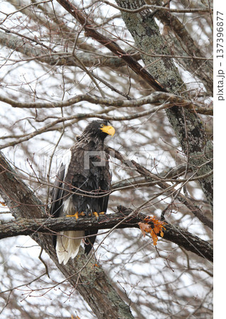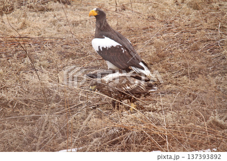 トビを仕留めたオオワシ おおわし 大鷲 猛禽類 北海道野鳥