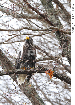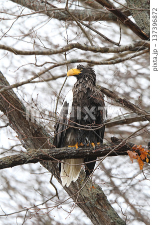 小雨の中獲物を探すオオワシ おおわし 大鷲 猛禽類 北海道野鳥