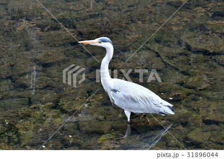 東京都三鷹市の野鳥 仙川浅瀬で水面を見つめるアオサギ