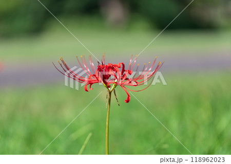 妄想的なバックを背景に易しく咲いたヒガンバナ