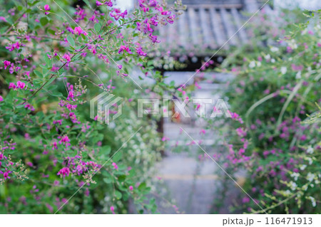京都市上京区梨木神社に咲く清楚な秋の七草萩を撮影