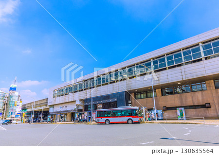 日本の横浜都市景観 横浜市営地下鉄 新羽駅やホームの電車などを望む…=9月8日