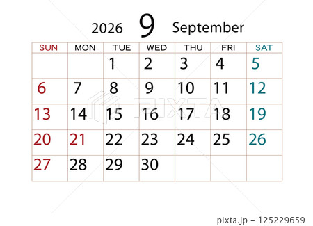 2026年カレンダー 9月