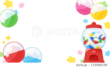 カプセルトイの機械がたくさん並んでいる背景イラスト_16:9