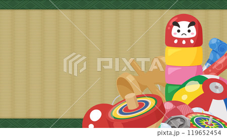 昔の遊びに使うおもちゃの背景イラスト_16:9