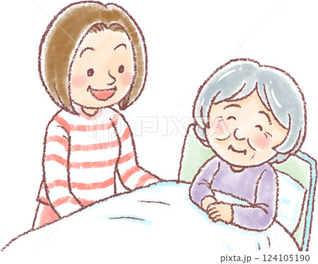 高齢の母親に寄り添う中高年の娘_介護のイラスト