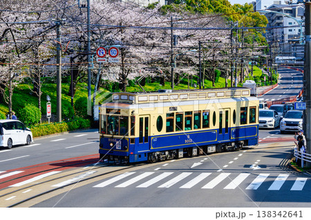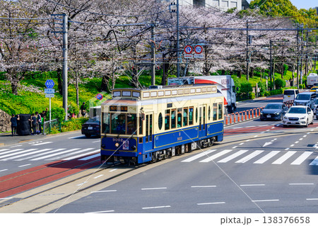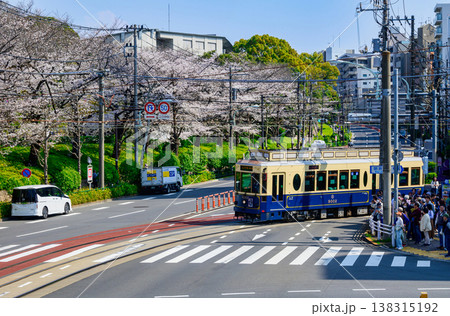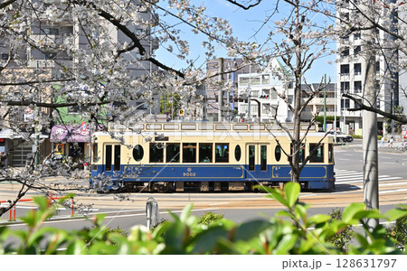 東京さくらトラム さくら号( 9002号車)と飛鳥山公園満開の桜 季節限定運行