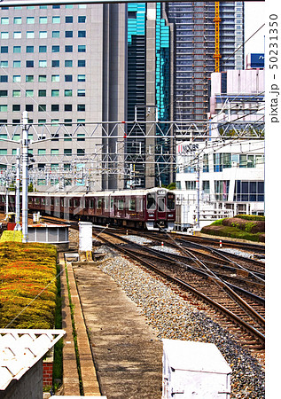 梅田駅に入る阪急電車
