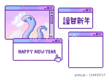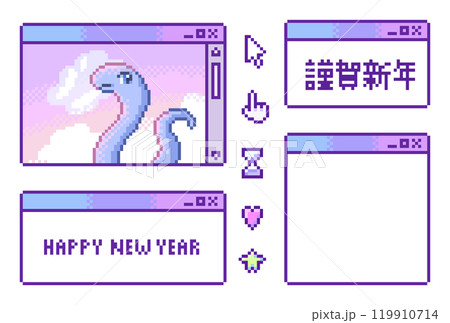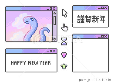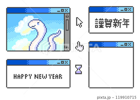 懐かしいブラウザ風デザインのドット絵年賀状:黄昏れる蛇