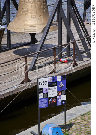 Bell #9801 on Vltava river in Prague, commemorating cultural loss of 9801 bells taken by Nazis from Czech Republic during the WW2