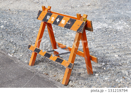 A型安全バリケード_黄色黒色シマシマ_安全第一_文字あり