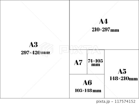 用紙のサイズ。A4、B5、A5、B6、A6。用紙の大きさ。ベクターイラスト