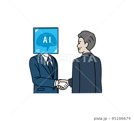 ロボットと握手するビジネスマンのイラスト