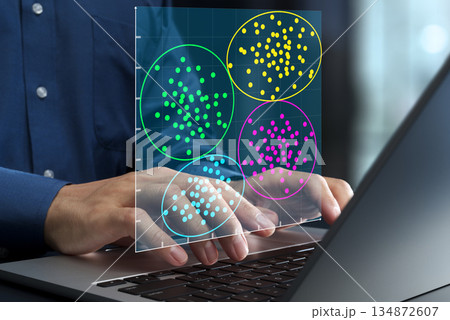 データクラスタリング図とクラスター分析。機械学習とデータセグメンテーション。ビッグデータを分析するた