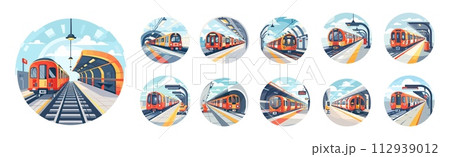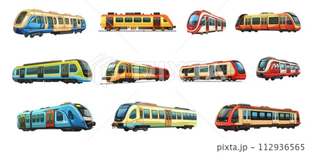 AI-generated content. Subway trains. Cartoon isolated train set, modern urban underground transport. Rail transportation, tram or subway. Public vehicle vector set