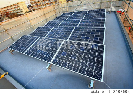 建築中の陸屋根… 架台に設置された【太陽光発電パネル】