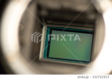 Macro photo of an APS-C camera sensor. Old dslr camera showing its sensor behind mirror before cleaning