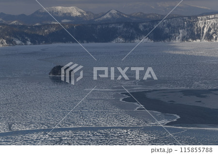 結氷した冬の摩周湖、カムイッシュ