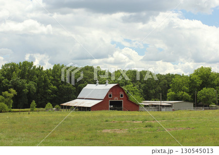 Red Barn located on Farm in East Texas with Blue Sky, Overton TX