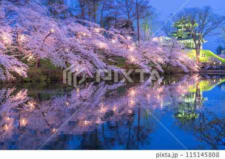 《新潟県》桜満開・春の高田城址公園の夜景