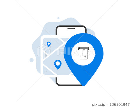 ATM location pin with bank card concept. GPS atm locator for location-based payments, digital banking navigation concept, modern flat finance UI isolated on white background vector illustration