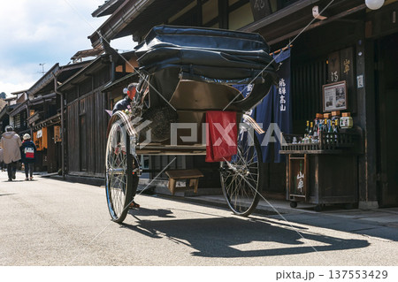日本の岐阜県 高山市の古い町並 歴史を感じさせる古民家 春の高山祭期間中の朝の様子