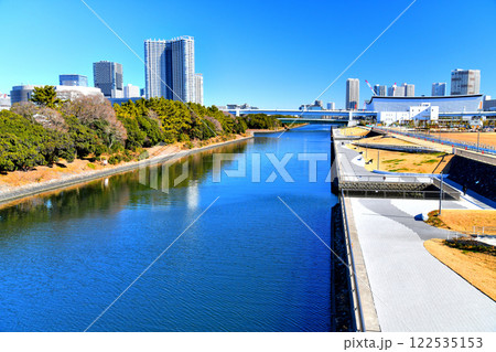 木遣り橋/東雲運河より有明親水海浜公園、有明北橋方面を望む(東京都江東区)【2025.1】