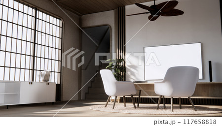 Living room sofa armchair minimalist modern old japanese style.3D rendering