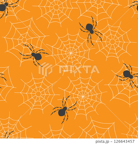 Seamless pattern with spiders on the web. Halloween print