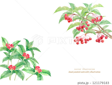 水彩で描いた千両と万両のベクターイラスト