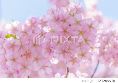 透明水彩絵の具で書いた桜の花と葉っぱのイラストセット