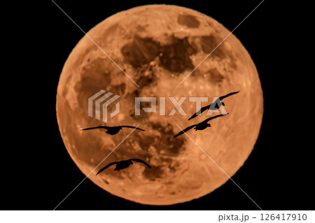 Hunter's moon. Super full moon with dark background. Madrid, Spain, Europe. Horizontal Photography. 28. October. 2023. Moon. Supermoon. Sulfur. Conjunction. Venus. Saturn. Jupiter.