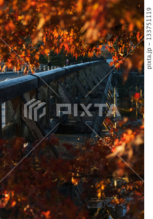 東京 紅葉に染まる秋川渓谷 石舟橋