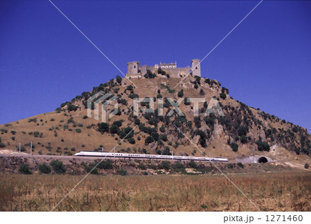 アルモドーバル城をバックに走るスペイン新幹線AVE