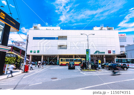日本の横浜都市景観 横浜市緑区の中山駅前。中山商店街などを望む