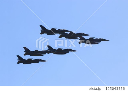 首都防空の要『百里基地』の上空を編隊飛行するF-2ジェット戦闘機