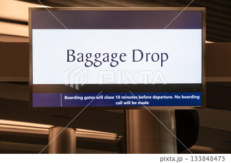 Singapore, Singapore - November 02, 2024: Baggage drop sign at Changi Airport Singapore, showcasing modern design and travel information in a busy terminal environment