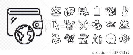 Cursor, Seafood and World communication line icons for web app. Glare of light effect. Message icon. Pack of Fake news, Wallet, Teamwork pictogram icons. Vector