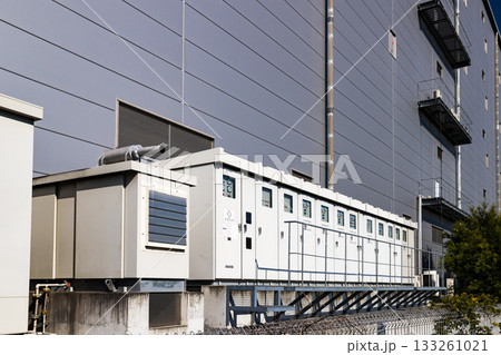 工場設備 非常用大型発電機とキュービクル