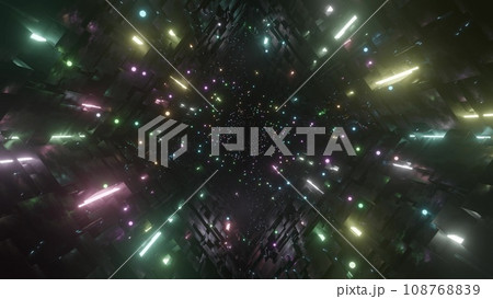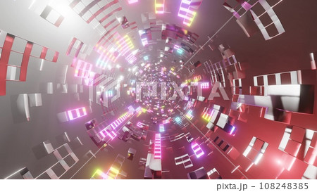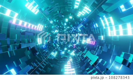 カラフルで美しいサイバー空間トンネル Colorful cyber space