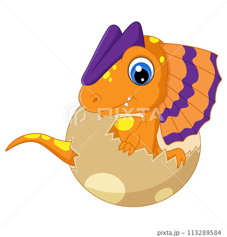 Cartoon baby dilaphosaurus hatching from egg of illustration