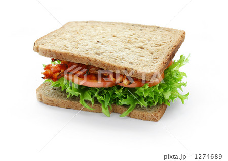 サンドイッチ、BLTサンド。ベーコン・レタス・トマトサンド。食パン、厚切りベーコン、トマトなど。