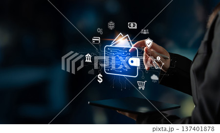 Secure Digital Wallet Payment Interface on Mobile with Fintech Icons. Corpus
