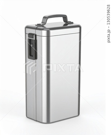 Rectangular Metal Container with Black Handle in a Studio Setting on White Backdrop